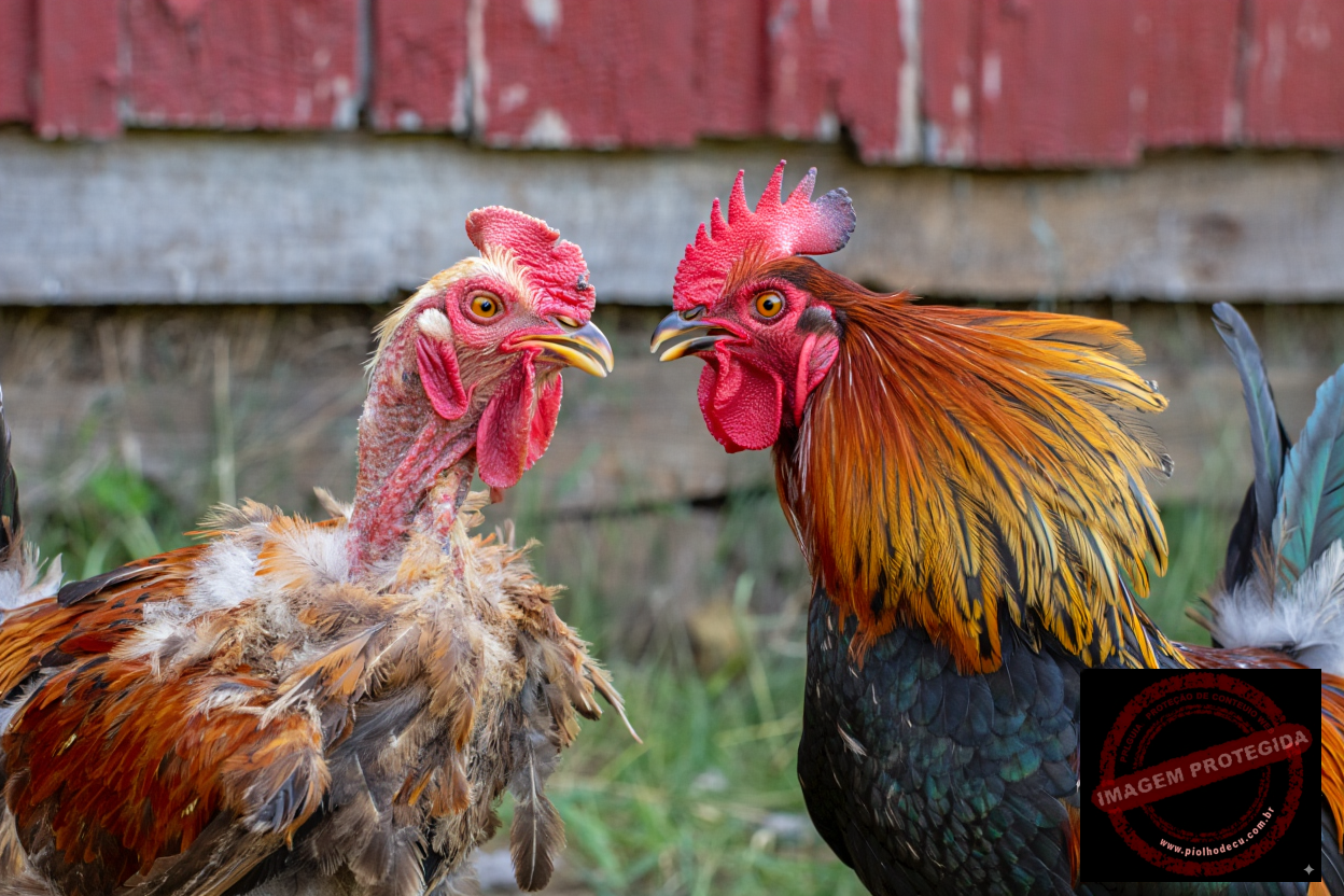 Aí o dono, que é tipo o patrão da parada, viu que o corre tava fraco. Pensou: “Vou ter que dar um jeito nessa bagaça!”. Foi lá e comprou um galo novinho em folha, cheio de gás, com a crista em pé e o peito estufado, tipo MC que acabou de estourar. Soltou o moleque no galinheiro, mas não despachou o véio, deixou os dois lá.